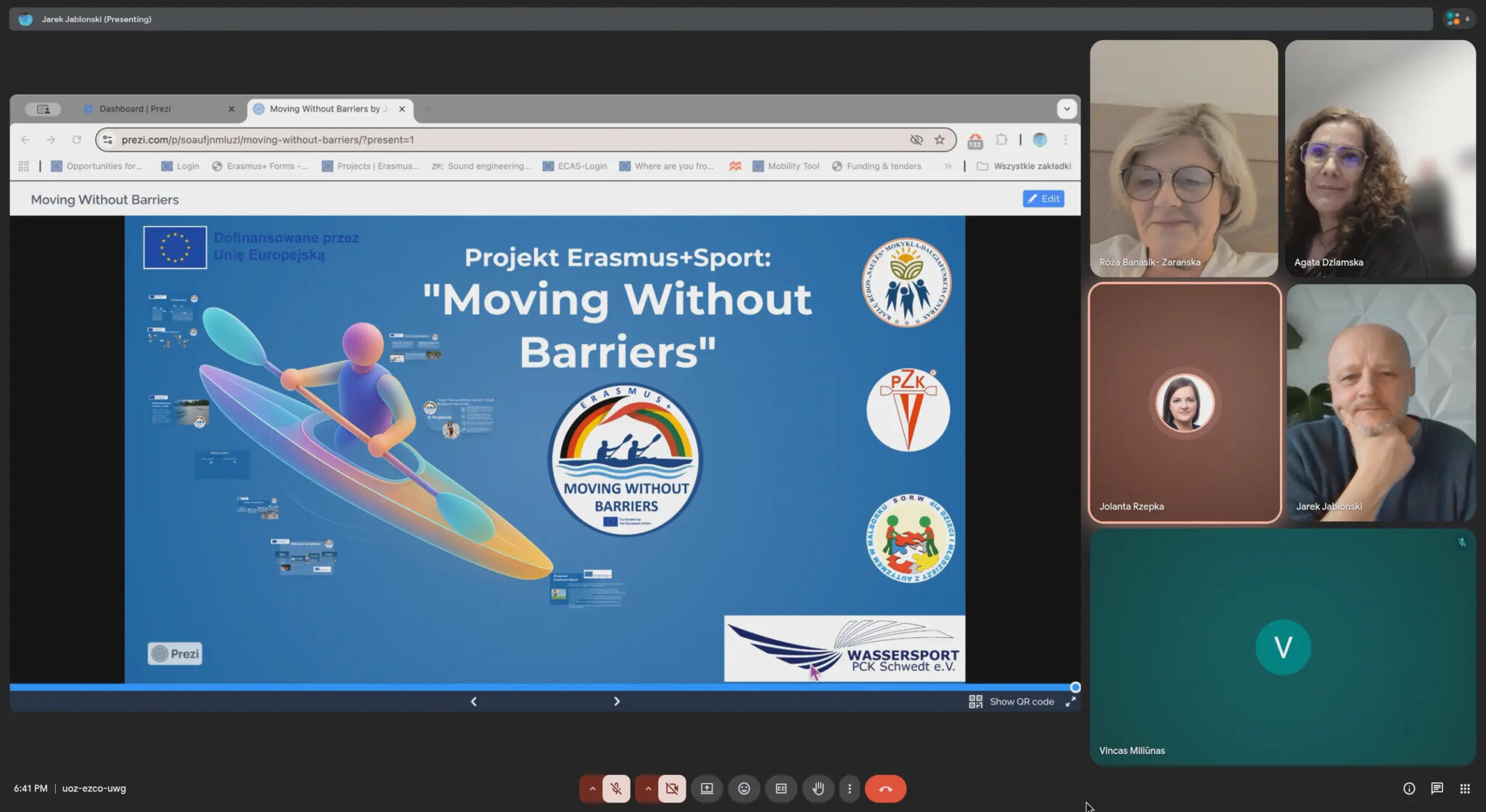 Participants: Jarek (meeting/presentation host), Róża, Agata, Jola (joining from Australia), Vincas (partner from Lithuania), Kasia (briefly).